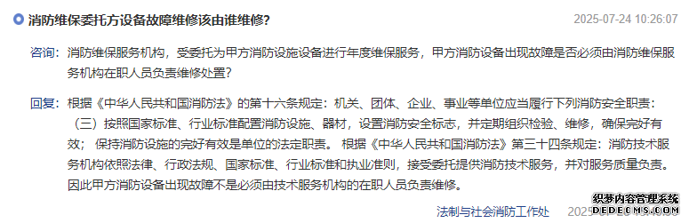 因此甲方消防设备出现故障不是必须由技术服务机构的在职人员负责维修。